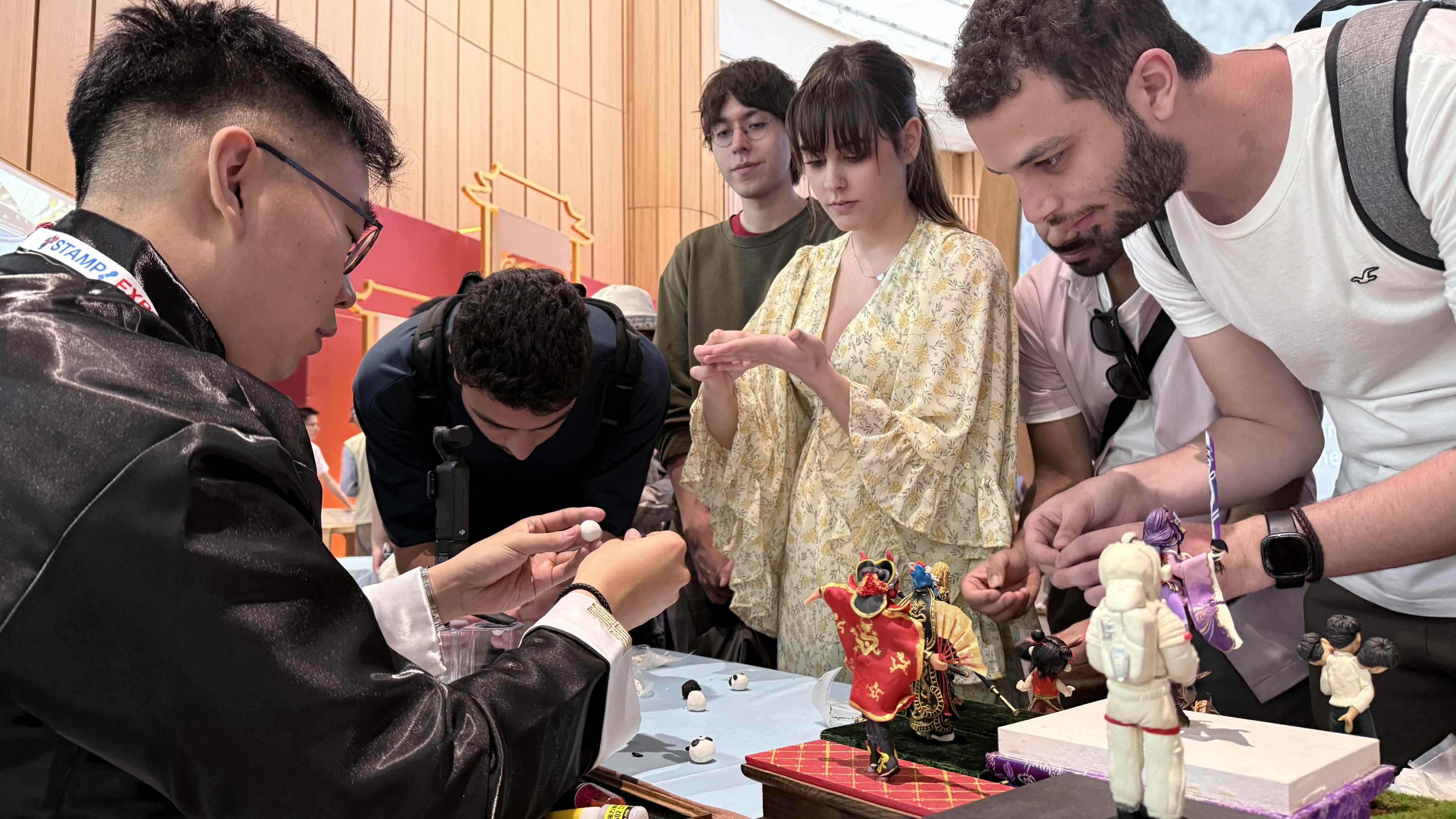 北京面人郎、哈氏风筝、御笔坊制笔三项国家级非遗传承人现场授课,参与者亲手创作,近距离领略非遗文化与魅力。全景中轴、数字中轴、人文中轴三大展区交相辉映,中外观众通过打卡集章、北京中轴线点位AI合影、沉浸式观影等多种形式,了解北京中轴线的历史文化价值和保护传承成果,感受中华文化独特魅力与深厚底蕴。