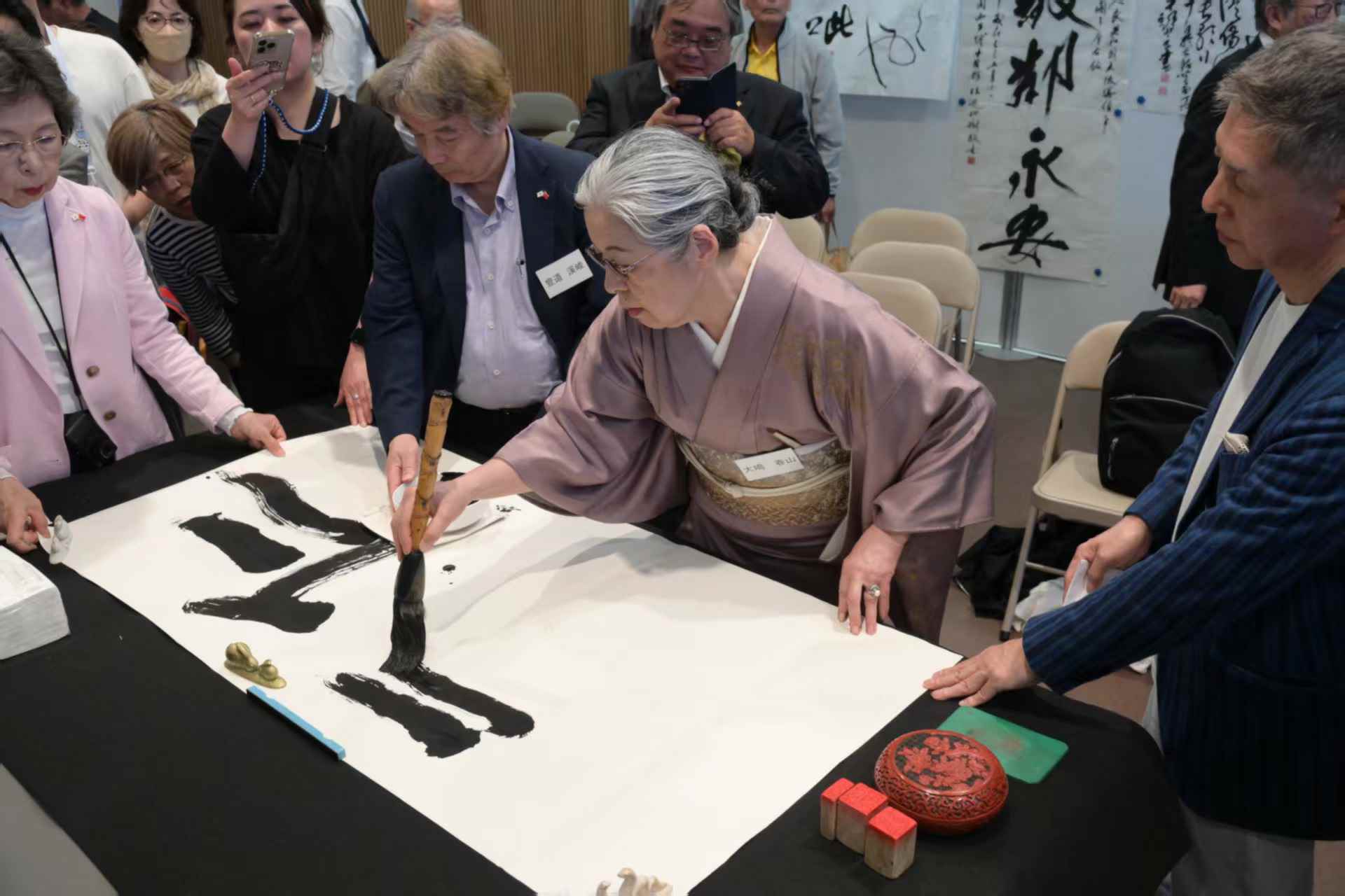 功夫舞蹈《龙韵》以“武”为本、借“艺”抒情,向世界展现了中国龙的刚健与威严,彰显了中国功夫的独特魅力。昆曲《白蛇传·游湖》让观众深刻理解中国人对美好生活的向往和追求。中日16位书法家围绕 “和平、友好” 主题,挥毫泼墨、切磋技艺、畅谈心得,携手合作完成了“山川异域、风月同天”“美美与共、天下大同”等4幅作品,表达了珍爱和平、共同发展的愿望,促进中外文化交流和民心相通。